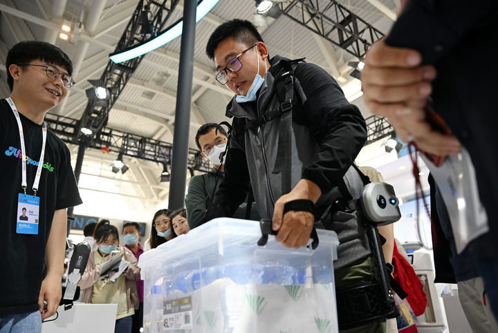 无人茶室里,机械臂端上铁观音等6种茶水供观众品尝;外骨骼机器人既能弥补人的身体功能缺陷,又能延伸人的运动能力;天津港智慧零碳码头模型,展示出码头从劳动密集型向科技密集型转变的趋势……展会上的创新应用场景,令人向往。