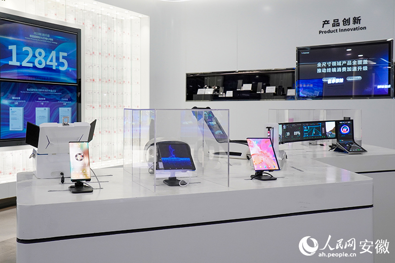 在合肥新站高新区的维信诺公司实验室,阵列仿真资深研究员郭潇潇仔细检测一块屏幕的耐高温、防撞击、抗摔打等数据。