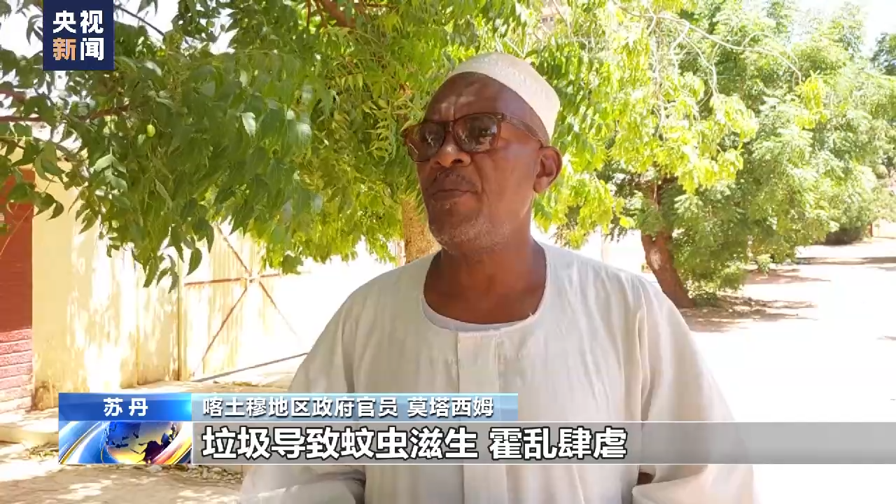 喀土穆地区政府官员 莫塔西姆:垃圾导致蚊虫滋生,霍乱肆虐,这一问题近期变得尤为严重。因为安全因素,很多地区垃圾处理车无法进入,无法将街道上的垃圾运送到处理场。雨季即将来临,蚊虫传播的传染性疾病将会造成比战火还严重的环境灾难。