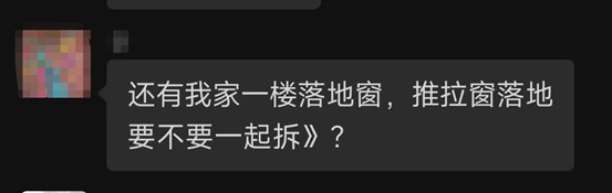 对于“窗改门”问题,对方则表示,“可以确定,敲掉的不是承重墙,现在正在排查这个事,目前还没有具体的解决措施。”