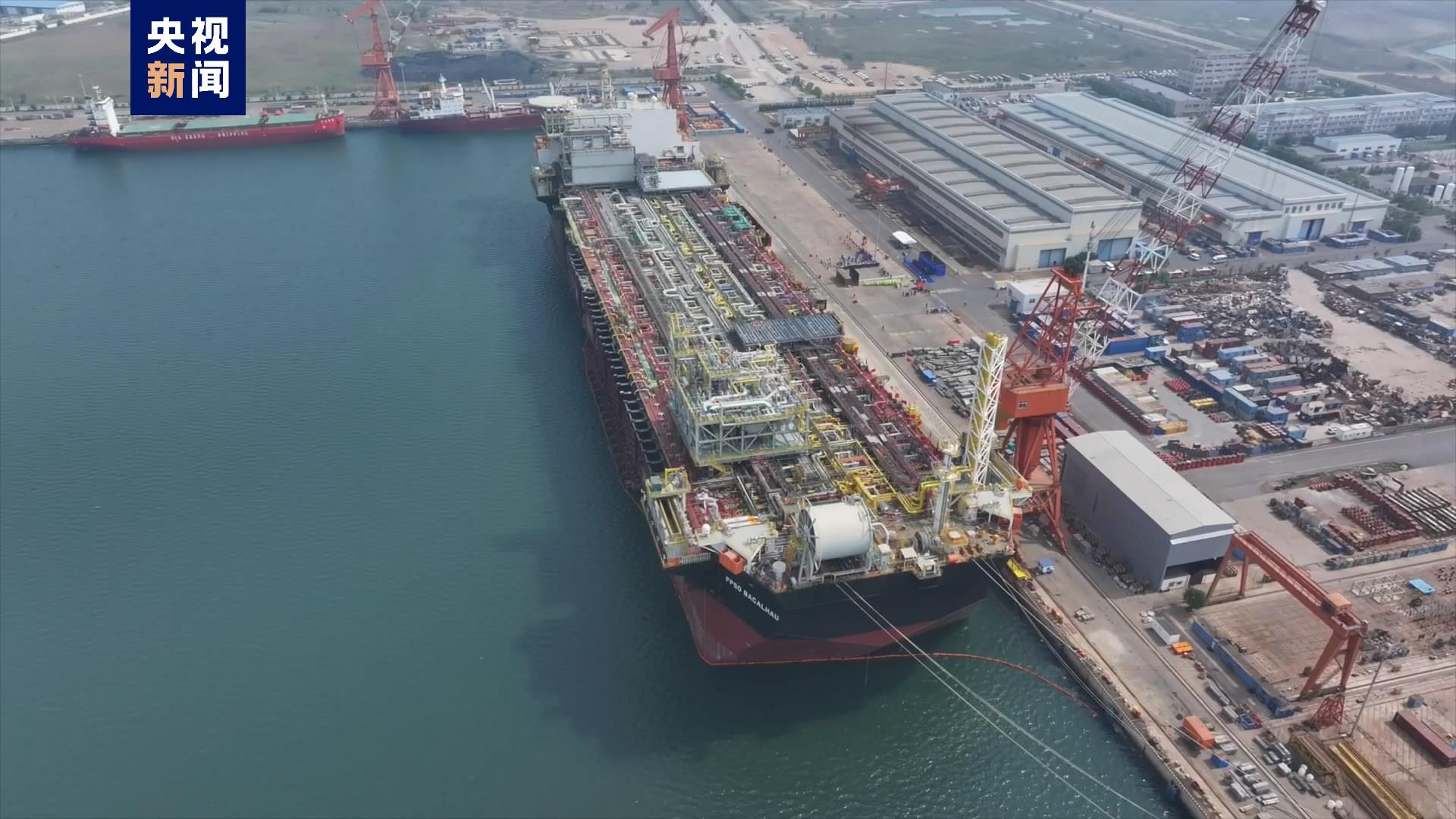 浮式生产储卸油船是开采深海油气资源的高端大型海洋工程装备,可实现海上石油、天然气等能源的开采、加工、储存、外运,被称为“海上石油加工厂”。今天交付的M350型浮式生产储卸油船,总长364米、型宽64米、型深33米、排水量46万余吨,是目前世界上最大尺度的浮式生产储卸油船。