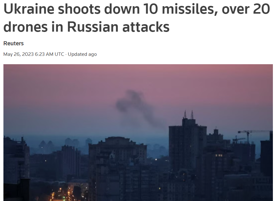 另据路透社26日报道,乌克兰空军宣布,在本次袭击中,乌军共击落了俄军发射的10枚巡航导弹和23架自杀式无人机。