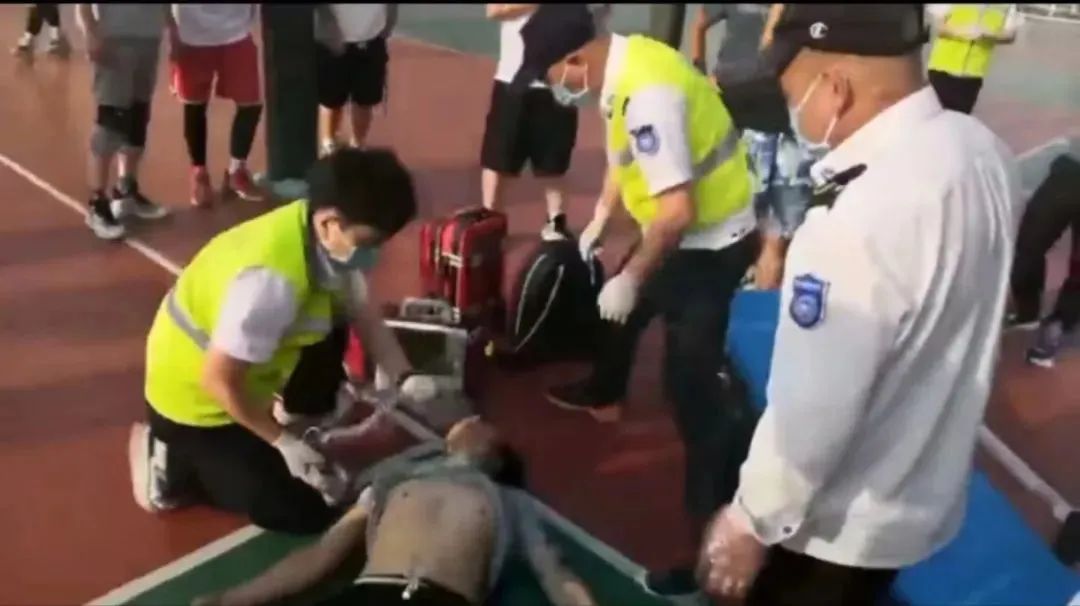 当天16时55分左右,一名男子正在篮球场上运动,突然倒地不起。在这危急时刻,现场懂得救护知识的群众判断出男子已经发生心脏骤停,立刻对他进行胸外按压,并告知周围群众马上拨打120急救电话。