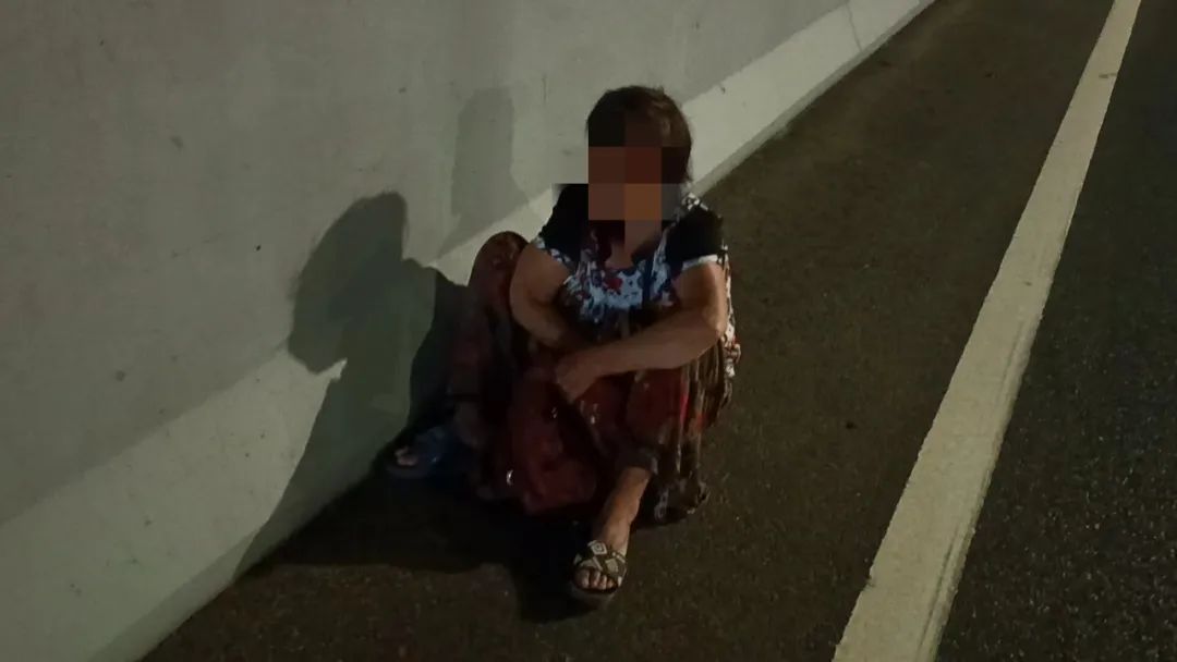 出于安全考虑,吴钟华立即将车辆停好,上前确认情况。他走近一看,果不其然,有一位瘦弱的老太独自一人坐在快车道旁,身旁不时有汽车呼啸而过,险象环生。