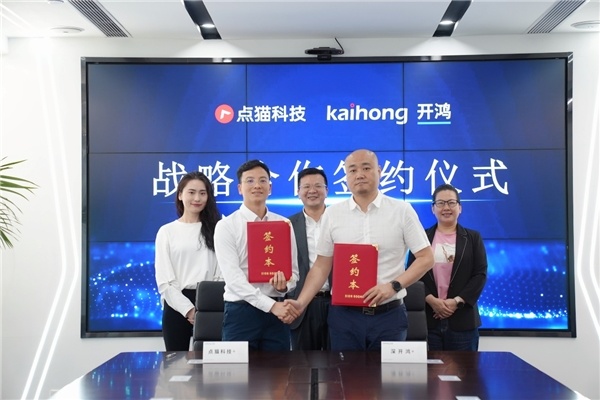 5月25日,深圳点猫科技有限公司与深圳开鸿数字产业发展有限公司签署了战略合作协议,点猫科技创始人兼CEO李天驰、福建宣芯科技有限公司董事长王莲珠、哈工大知名校友程庆述、深开鸿教育BG总裁于世杰等人共同出席了签约仪式。