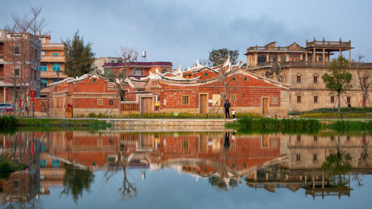 “我们将传统建筑作为展示侨乡历史和建筑技艺的场馆,将宗祠家庙作为展示家族文化的平台,将古民居作为原住民居住就业和外来人创业的场所,同时结合梧桉溪滨水景观、田园农业景观和大地花海景观组成天人合一生态景观。”晋江市住建局相关工作人员介绍道。