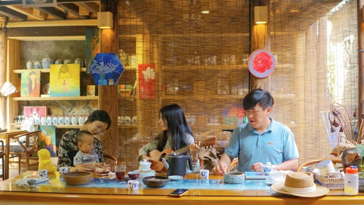 艺术的加持、政策的支持,让32岁的江西人胡文亮成为首批受益的“新村民”。龙潭村里,有一栋木制外观的两层民居,名为“檀舍”,这里兼具酒馆、民宿、陶艺等功能,是胡文亮的“文创空间”。“我并不是心血来潮来这儿,一味追求诗和远方。”胡文亮表示,这里创业成本低,而且物流、交通都很方便。