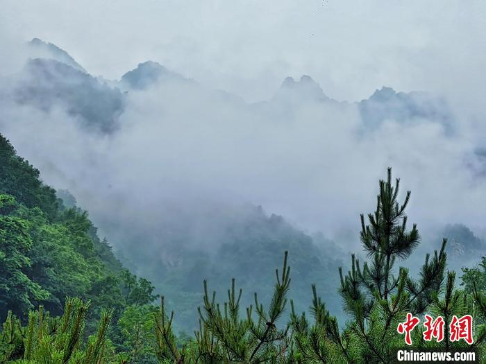 5月27日,雨后的五岳寨云海翻腾,仙气飘飘,青峰耸立,白雾氤氲,如梦如幻,宛若一幅水墨画。