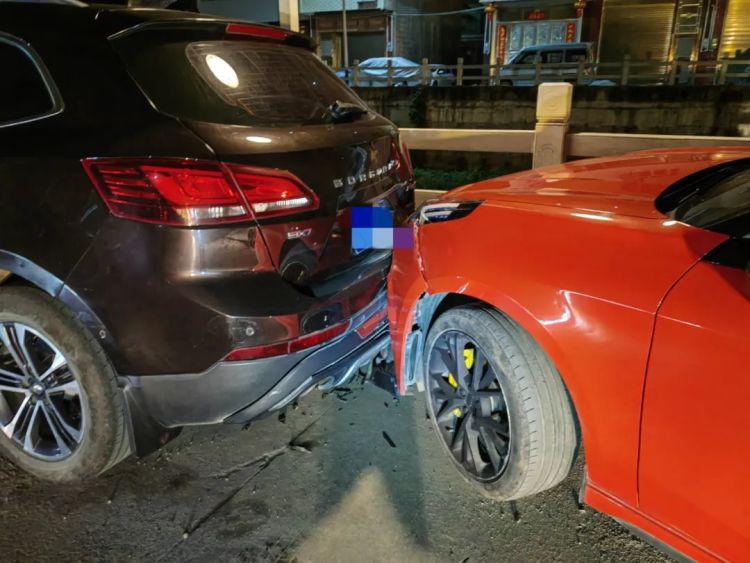从视频中可以看到,黑色小型轿车经过事发路段时,突然碰撞至停放在路边的红色小轿车,随后,黑色小轿车直接“四脚朝天”翻倒在路面上。而被撞的红色小轿车由于惯性,碰撞到停在前面的越野车尾部,致三辆车受到不同程度损坏。