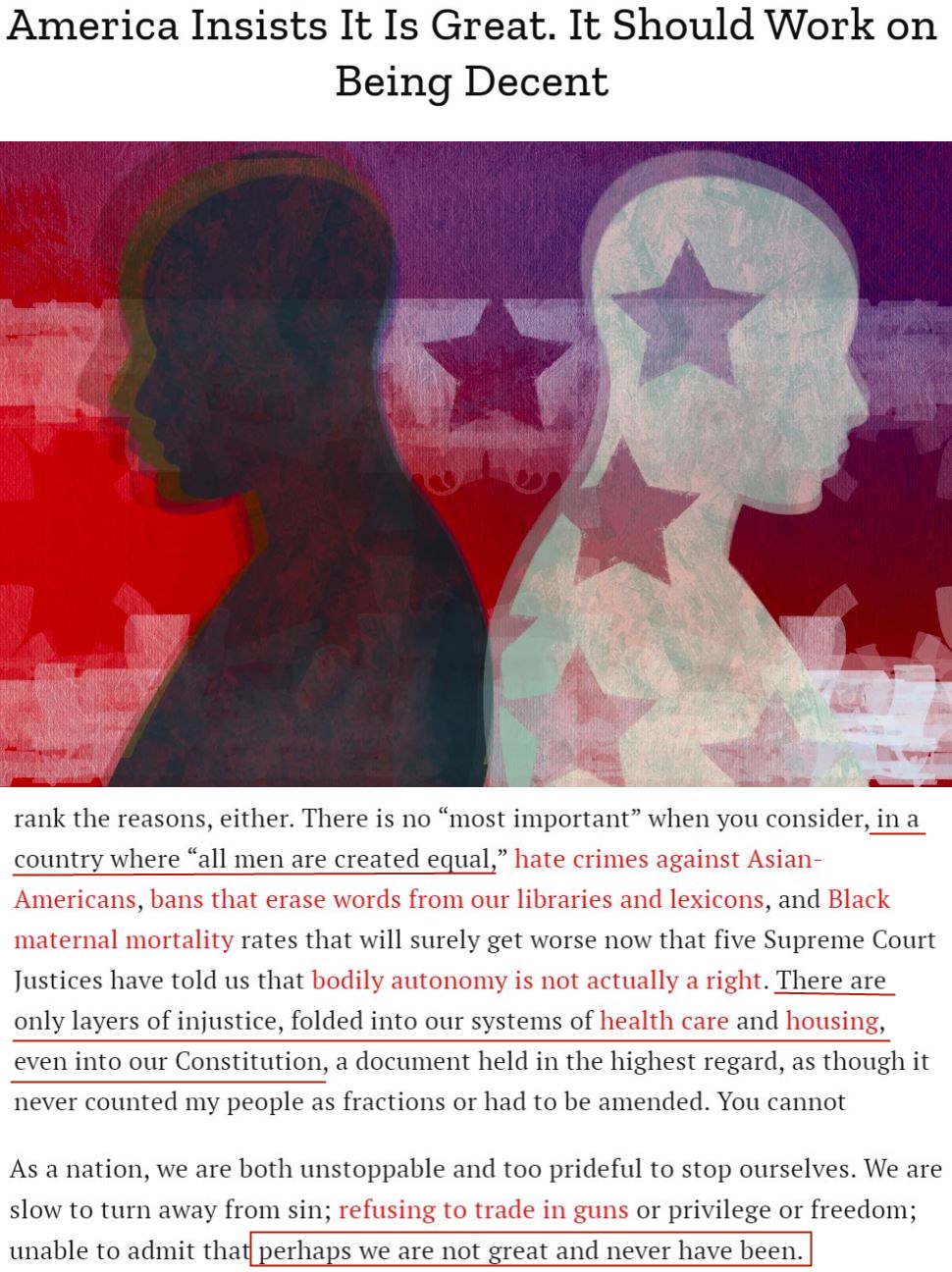 “作为一个国家,我们过于自傲,以至于无法承认自己并不伟大,也从未伟大。”