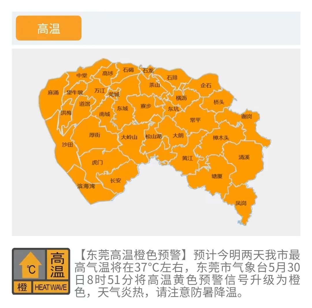 5月30日,东莞迎来了今年夏天首个高温橙色预警:预计今明两天东莞最高气温将在37℃左右。酷暑难耐,户外劳动要特别当心热射病。