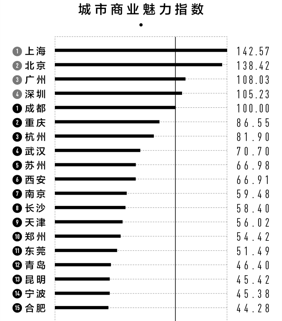 这是通过近200个品牌、17家互联网公司和数据机构的城市大数据,围绕商业资源集聚度、城市枢纽性、城市人活跃度、生活方式多样性和未来可塑性五大一级维度来评估337座地级及以上城市。
