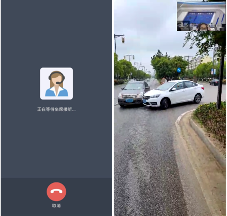 当事人点击“视频报警”按钮后,呼叫等待公安交管部门接警人员接听,接警人员接听后进入双方视频通话。