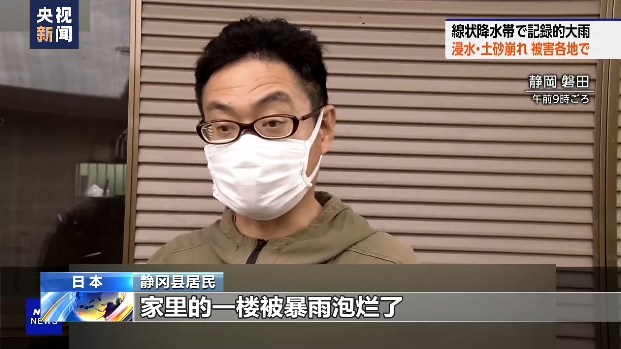 静冈县居民:降雨程度已经超出想象,我们都出去避难了,家里的一楼被暴雨泡烂了。