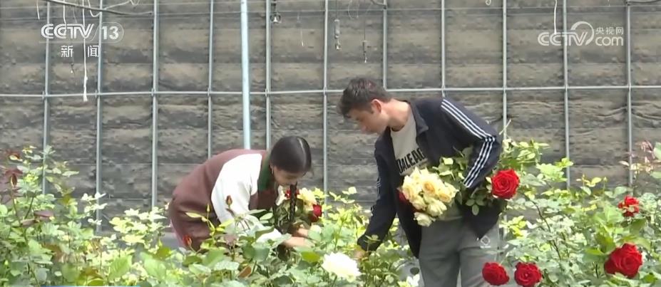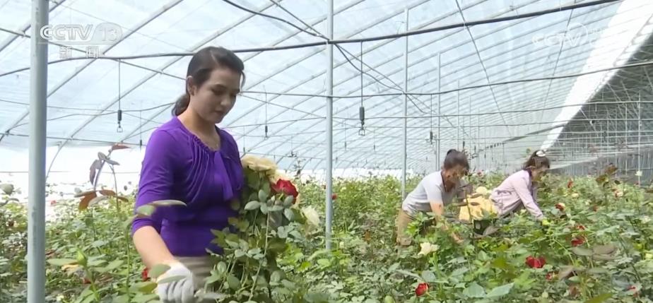 据了解,当地种植了百合花、玫瑰花等花卉品种。其中,玫瑰花一年可收获4茬—5茬,年产量可达5万枝。当地还引进了智能物联网控制系统,种植户可以操控系统完成浇水、雾化等工作,提高了种植效率。