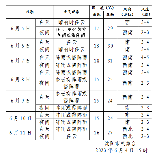 具体预报如下:7日午前,全省晴转多云;7日午后至夜间,全省大部地区有阵雨或雷阵雨,东部地区局部有中雨,并伴有雷电、大风、冰雹等强对流天气。各地最高气温为24—33℃。全省偏南风3—5级,辽河流域及以西地区阵风可达7—8级。