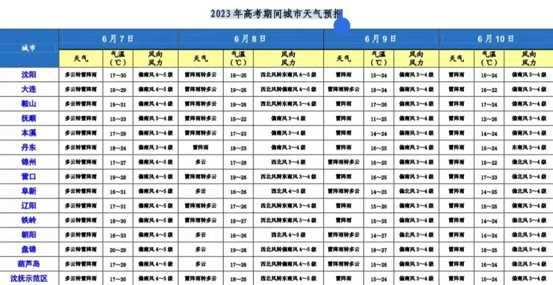 二、高考期间天气预报