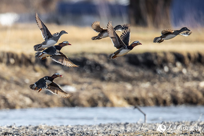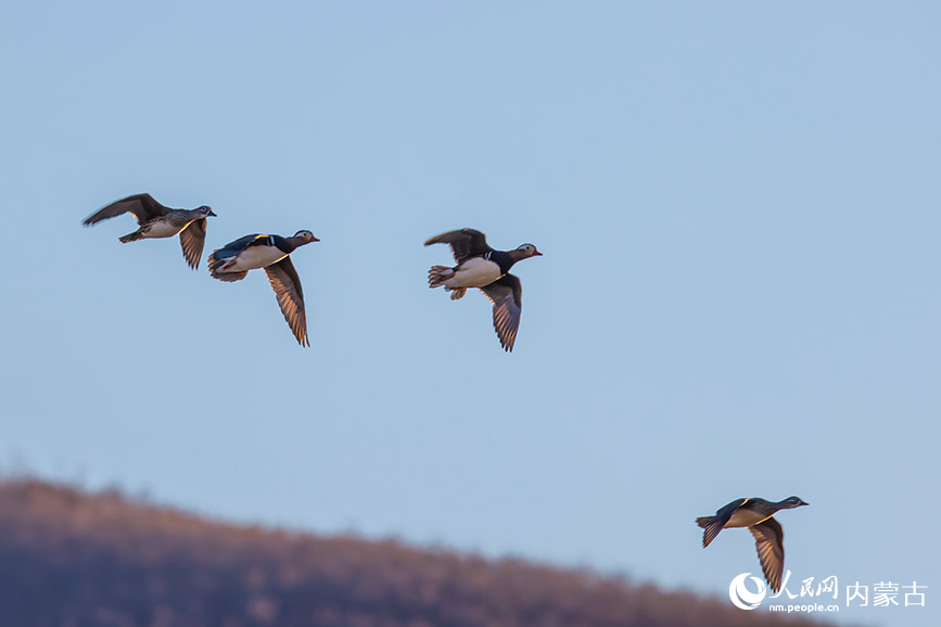 人民网呼和浩特6月5日电 (富丽娟、刘艺琳)内蒙古兴安盟科右前旗索伦河谷是候鸟迁徙的重要中转栖息地。每年大量鸳鸯在此处落脚栖息,当地故被称为鸳鸯谷。