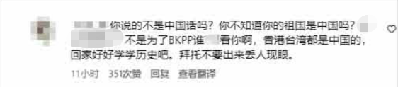 报道称,目前,该主持人的社交平台ins账号已有大量内地粉丝留言批评。通过港媒贴出的网友评论截图,有网友说,“你说的不是中国话吗?你不知道你的祖国是中国吗?香港、台湾都是中国的,回家好好学学历史吧,拜托不要出来丢人现眼。”