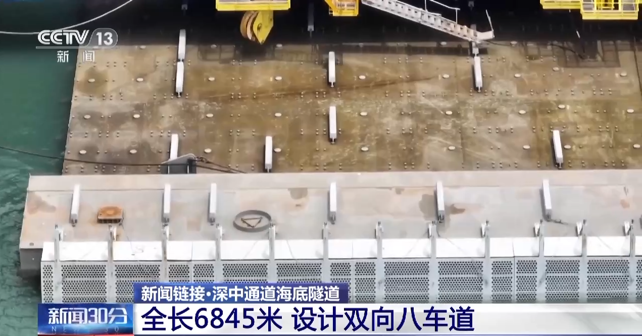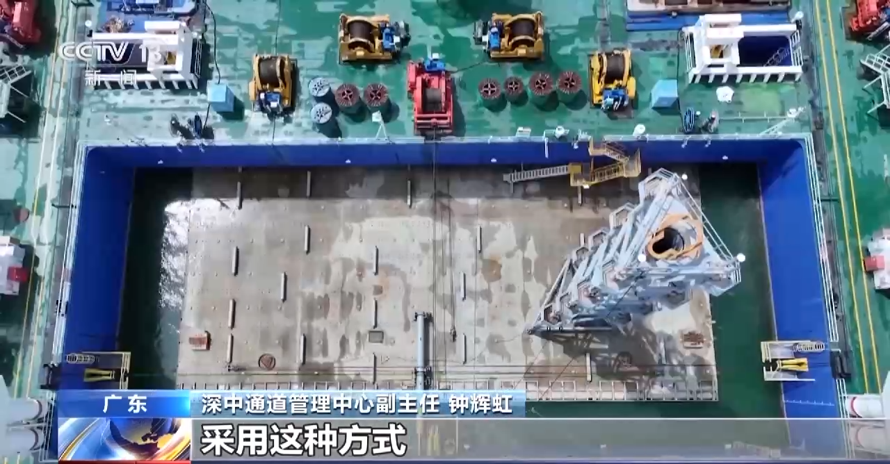 总台央视记者 李伟代:我国自主研发、具有完全知识产权的世界首艘沉管浮运安装一体船,现在已经与深中通道海底隧道最后一节沉管及最终接头紧紧连接,正准备从这里启程,开始最后一节沉管及最终接头的浮运安装。