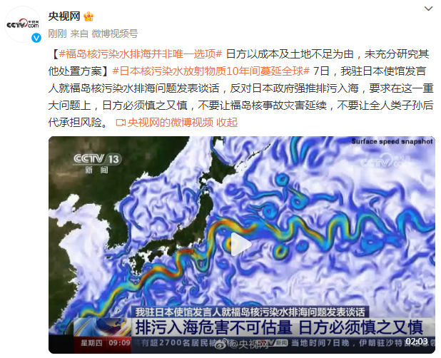 7日,我驻日本使馆发言人就福岛核污染水排海问题发表谈话,反对日本政府强推排污入海,要求在这一重大问题上,日方必须慎之又慎,不要让福岛核事故灾害延续,不要让全人类子孙后代承担风险。