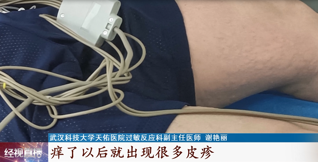医生介绍,梁先生当天吃了热干面后,约他朋友一起出去打球,打了不到1个小时,全身开始出现瘙痒,出现很多皮疹,从腿、胸部包括脸上全部都是,范围非常大,最后被人送医。