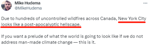 “纽约市看起来像是一幅末世的地狱景象。”当地时间 6月7日,一位美国网民在社交媒体上写道。