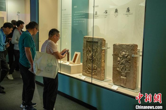 精美的莲荷文物吸引参观者。 刘忠俊 摄