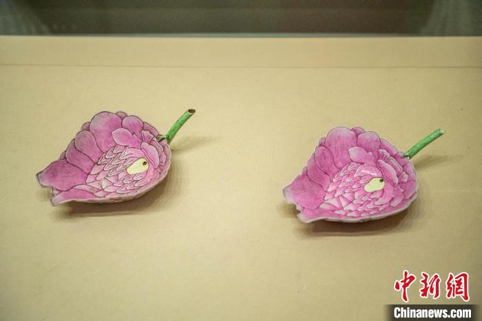 现场展出的粉彩莲花吸杯(清) 。 刘忠俊 摄