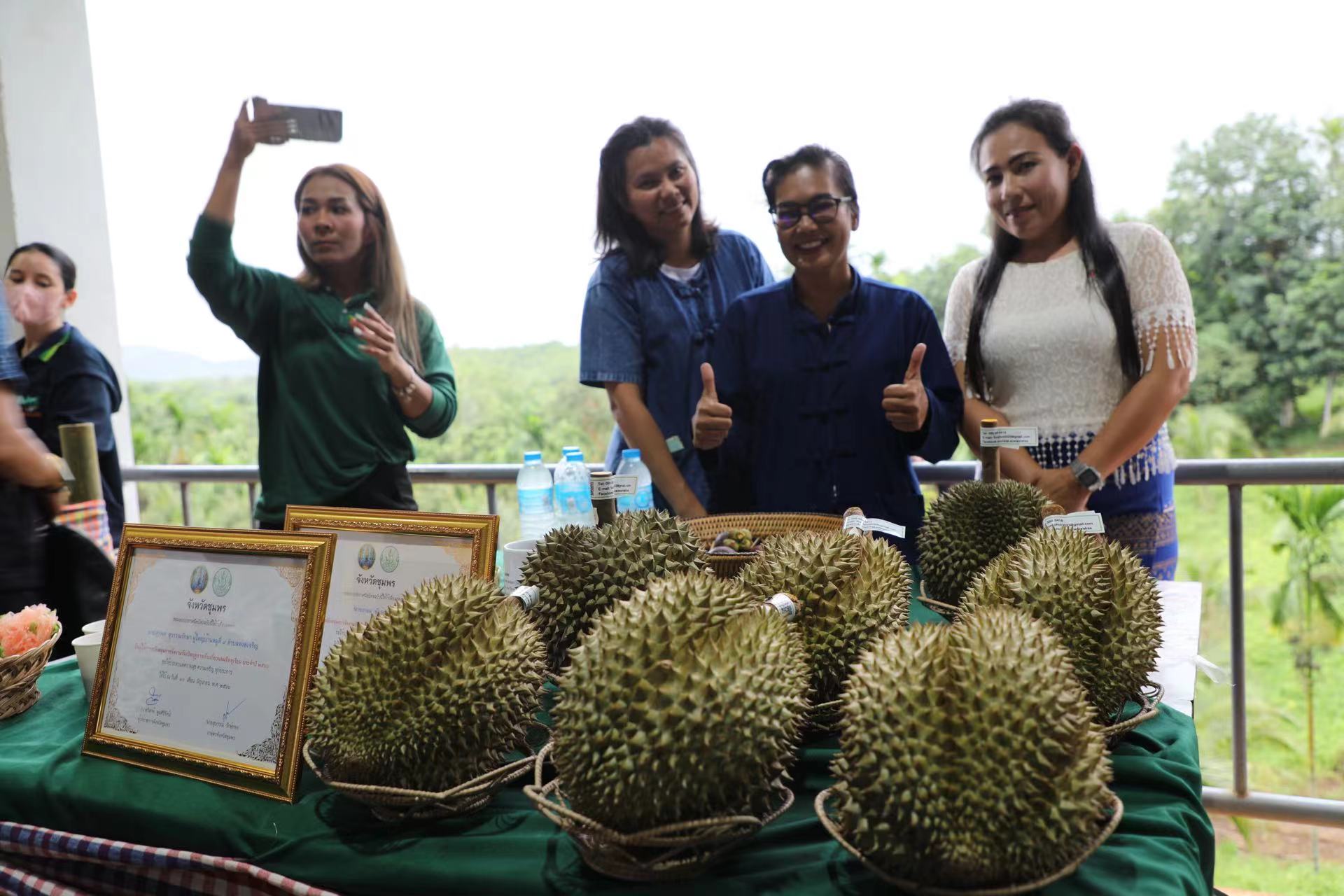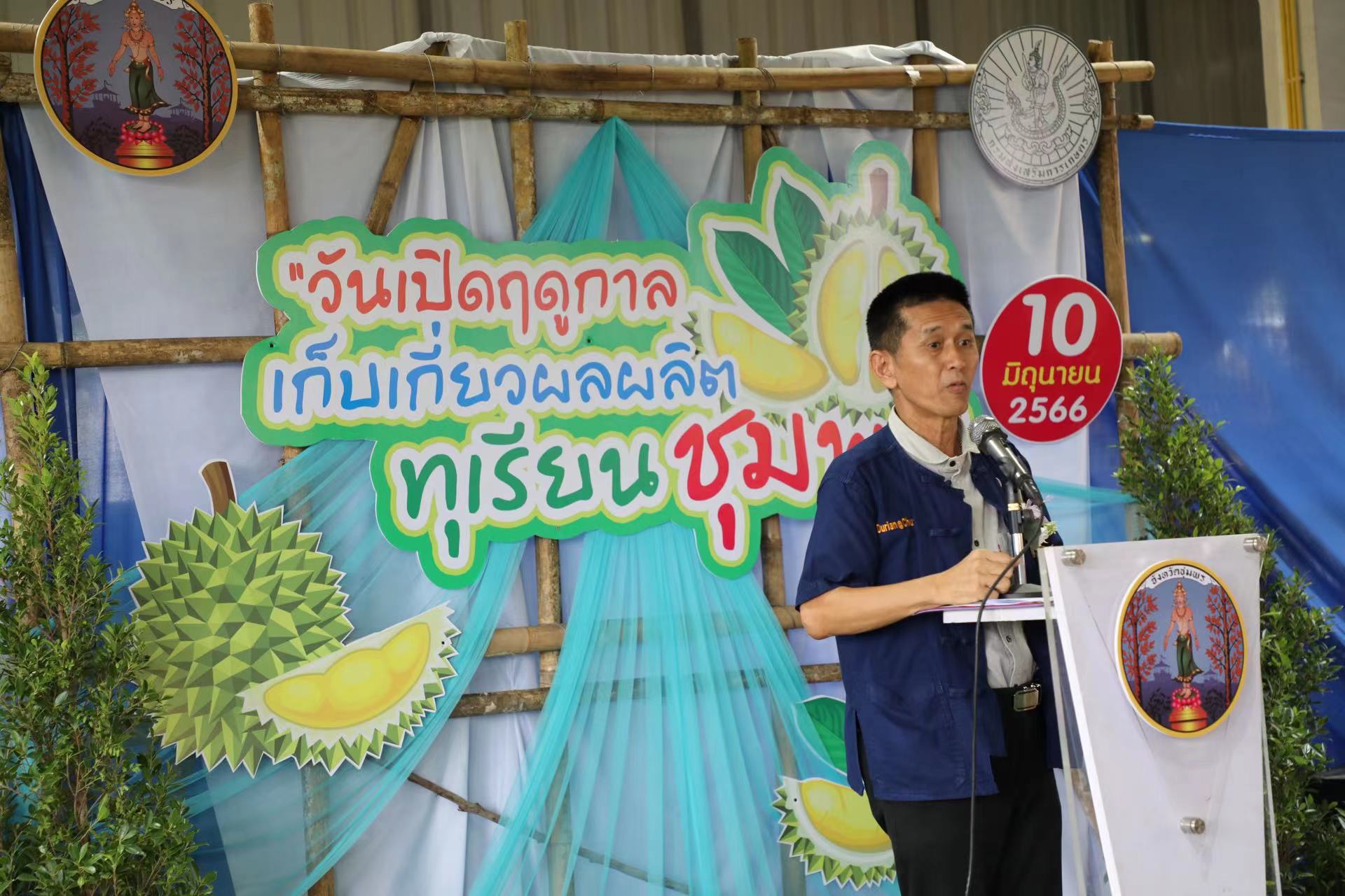 春蓬府农业局局长素班称,春蓬府的榴莲产地是泰国南部的主要产地,从6月份开始,预计2023年将有337,376吨榴莲上市,产品销售直至12月,主要销售到国内和国际市场,新鲜榴莲出口到重要市场地—中国。由于南部的榴莲收购量最大,春蓬府还通过社区企业、社区水果分拣中心、合作社、农民团体、贸易公司、邮局、网上市场、府内水果交易市场的途径进行产品分销。今天的活动包括榴莲节开幕活动(砍下榴莲第一刀)、榴莲果肉淀粉百分比分析演示活动、榴莲和榴莲相关产品的学术展览和品尝。