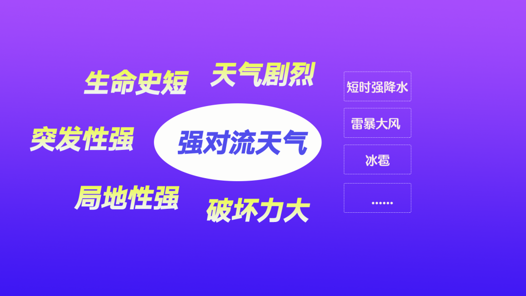 雷暴大风、短时强降水、冰雹、强雷电等强对流天气具有突发性强、局地性强的特征。