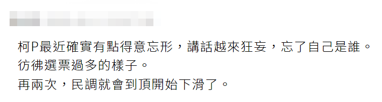 有人说,柯文哲最近确实有点得意忘形,讲话越来越狂妄,忘了自己是谁。仿佛选票过多的样子。↓