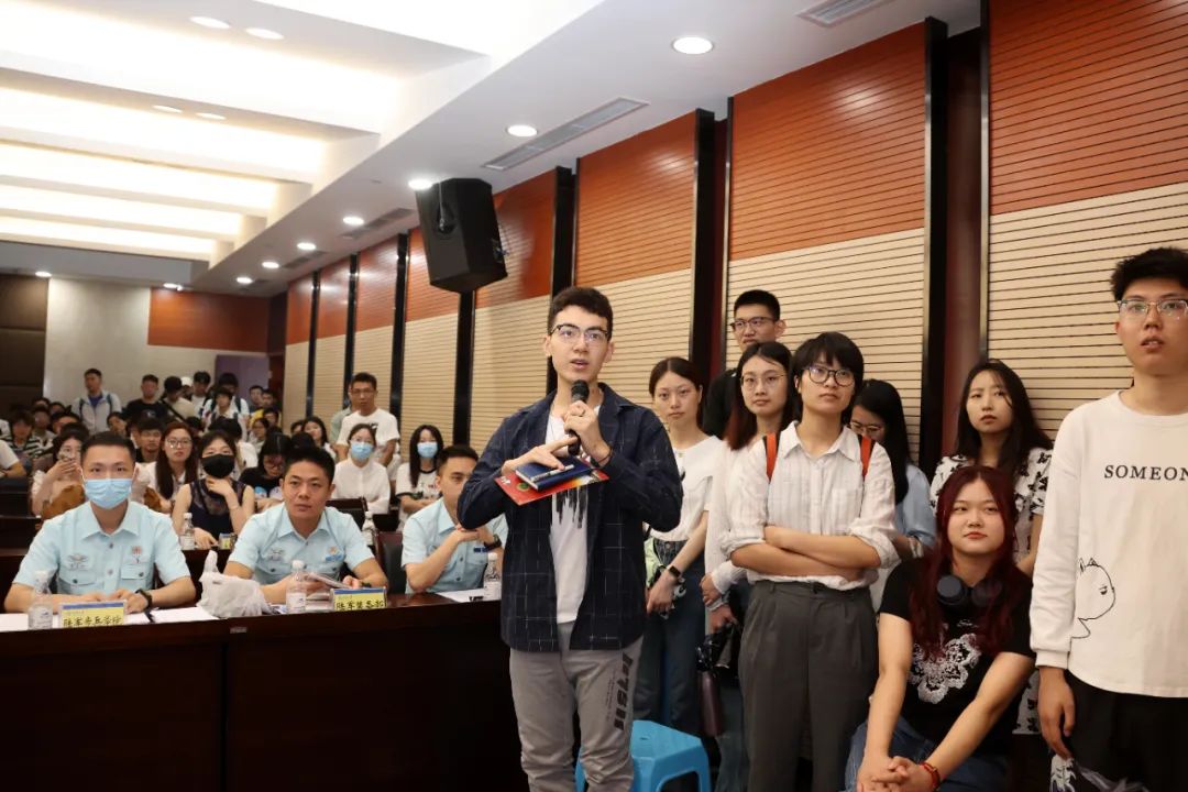 在重庆大学活动现场,偌大的教室座无虚席,过道上、入口处堵的水泄不通。一位拉着拉杆箱的男生来晚了,挤不进教室找到工作人员焦急地说:“我本来今天放假回家了,听说部队来宣讲,改签了晚一点的火车票,能不能给我找个地方进去听一听?”一名工作人员带他挤进了教室。