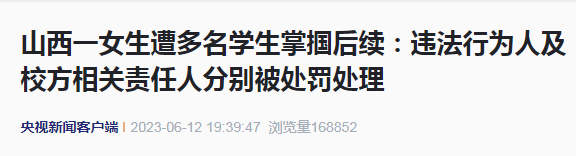 据央视新闻客户端报道,6月12日,记者从山西省襄垣县教育局获悉,6月11日,襄垣县第三中学校学生郎某某遭多名学生掌掴视频网传后,襄垣县教育局迅速联合相关部门成立调查组进行调查处理。