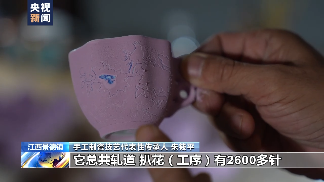 手工制瓷技艺代表性传承人 朱筱平:您别看这个杯子小,它总共轧道、扒花工序有2600多针,稍微大一点的杯子可能要1万多针。这个杯子在我们行业术语里叫“落针无悔”,99步走完,最后一针轧差了,这个杯子就要推倒重来。我们在千百年来传承祖辈技艺的同时,也在优化工艺,现在优等品率已经达到85%。这就使得我们制作的成本大幅降低,让平常百姓也可以拥有一件原来官窑器皿里的艺术品。