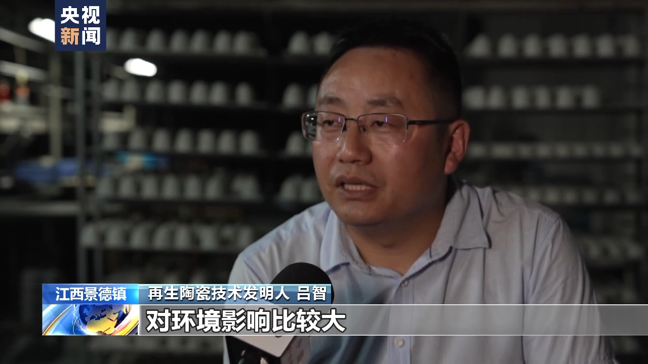 再生陶瓷技术发明人 吕智:刚开始来景德镇的时候,发现景德镇有好多生产出来的陶瓷废品都扔在废品池里面去了,所以在地下埋藏以后对环境影响比较大。