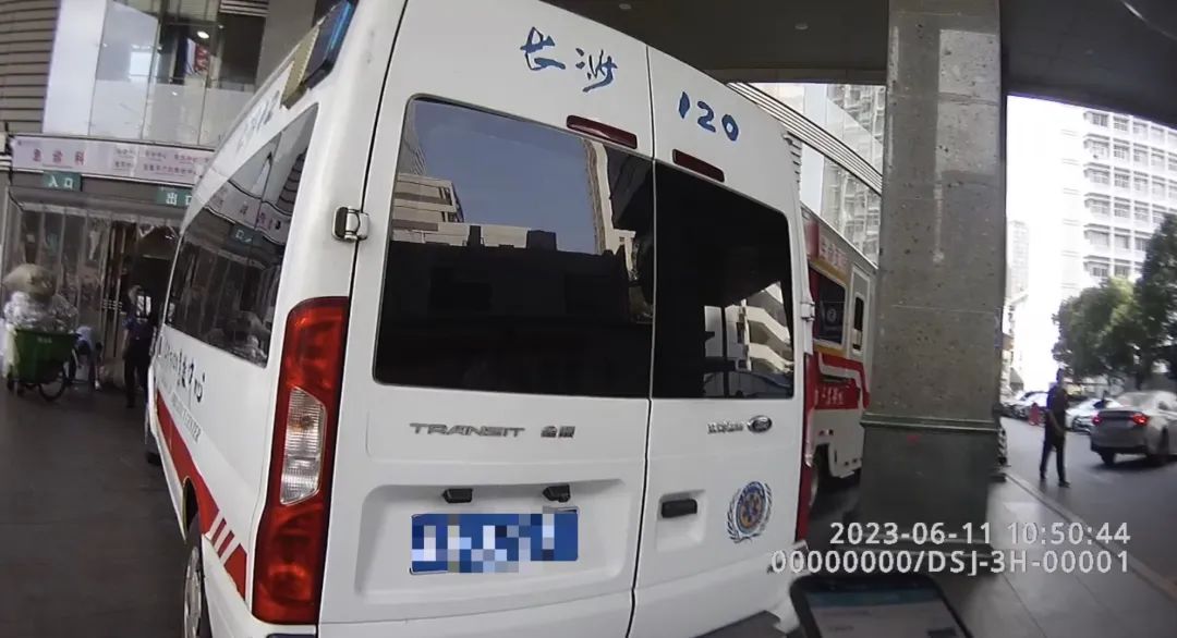 6月11日11时许,芙蓉交警大队三中队中队长周文星接到群众举报,称其发现一台疑似“假急救车”,目前停放在湖南省人民医院入口处,希望交警过来进行检查。
