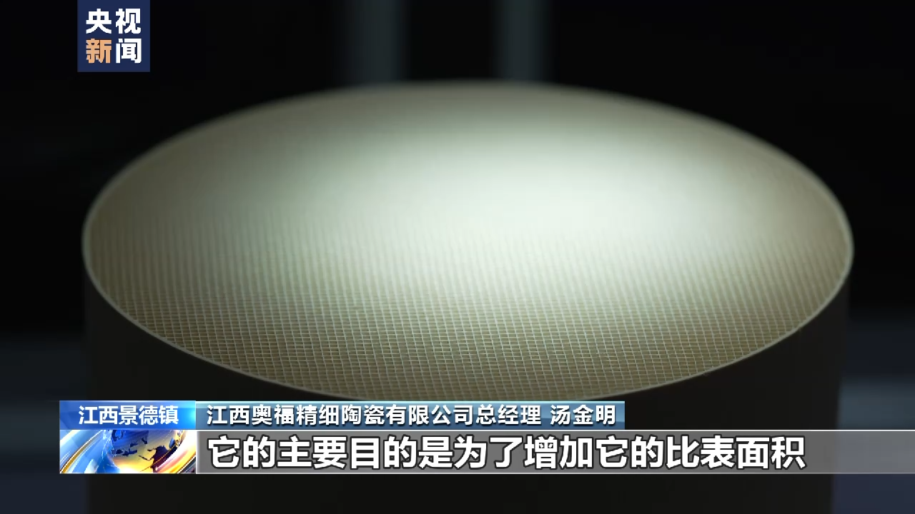 江西奥福精细陶瓷有限公司总经理 汤金明:孔越来越小,壁越来越薄,它的主要目的是为了增加它的比表面积,使它的净化处理效果越来越好。以前这种产品都只能依赖国外进口,近几年通过我们自主研发创新,我们已经完全掌握了这项技术,填补了国内的空白。