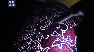 这道工序一定要在室外光线较暗,而室内有明亮光源的情况下进行操作。因为它的操作工艺相当复杂,非常考验耐心和技巧,匠人们需要在胭脂红的色料上用一种类似绣花针的工具勾画出下层的青花图案,在操作中需要严格控制走向,必须一气呵成,不能出现一丝一毫的误差,否则就意味着这个瓷胎作废了。