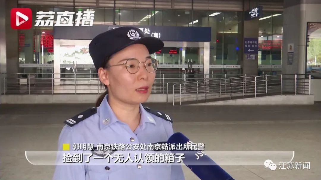 “民警一边在站区进行寻找一边广播,并且通过联勤联动群将信息发布,很快地铁警方在群里回复称,他们工作人员在巡查过程中,捡到了一个无人认领的箱子。”南京铁路公安处南京站派出所民警郭明慧说。
