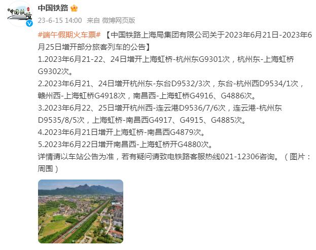 中国铁路上海局集团有限公司关于2023年6月21日-2023年6月25日增开部分旅客列车的公告