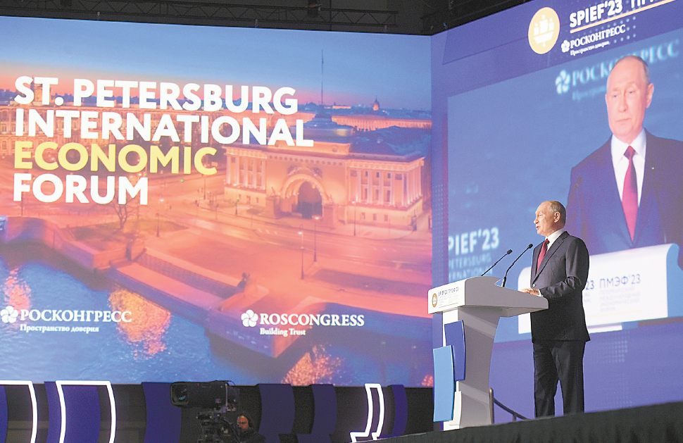 【环球时报驻俄罗斯特派记者 隋鑫 环球时报特约记者 柳玉鹏】俄罗斯总统普京16日在被称为“俄版达沃斯”的圣彼得堡国际经济论坛上发表讲话,全面总结去年以来俄罗斯克服外部制裁压力,推进经济转型复苏的成果,描绘出俄罗斯经济的积极前景。他称,2022年第二季度对俄经济来说是最困难的时期,但国家和企业采取的战略已经奏效,俄宏观经济发展正呈现动力十足的积极趋势。今年俄罗斯国内生产总值(GDP)可能增长1.5%至2%,这将使俄保持在世界主要经济体中的地位。这与西方媒体描绘的俄经济的黯淡前景截然不同。路透社16日称,普京“欢呼”俄罗斯经济的表现,称西方的制裁没能孤立俄罗斯。