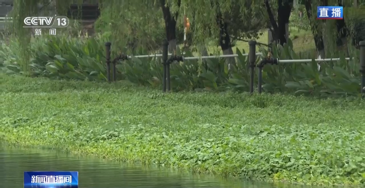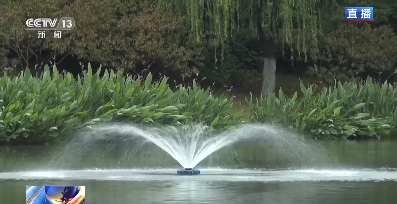 在10多公里的河道内,随处可见这样的漂浮湿地以及喷泉、水车等增氧设备。在我们看不见的水下,其实还有很多净水植物和鱼类,通过这样一整套系统来保持住塘西河的水质。在塘西河的治理中,还体现了保护环境人人责的理念。