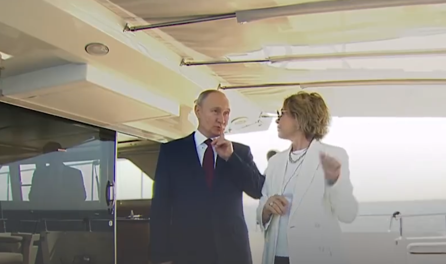 报道称,俄天然气工业石油公司是俄天然气工业股份公司旗下公司,后者在位于芬兰湾的圣彼得堡300周年公园设立了3根很高的旗杆,分别悬挂俄罗斯帝国时期旗帜、苏联旗帜和俄罗斯国旗。圣彼得堡300周年公园17日举行这3面旗升旗仪式,普京与伊柳辛娜在附近水域的一艘快艇上观看仪式,后者向普京介绍升旗相关情况时现场响起俄罗斯国歌,普京立刻做出“嘘”的手势,要求其保持安静。仪式结束后,普京与伊柳辛娜开始交谈。