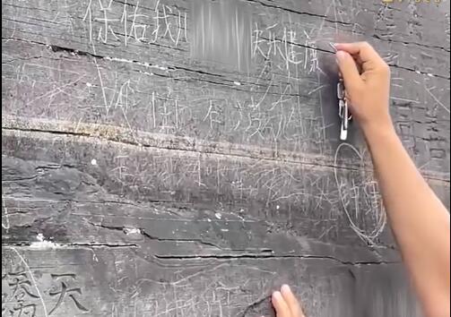网友发布的视频显示,6月18日,梵净山风景区内,一名男子在一处岩壁上刻字“保佑我儿徐某快乐健康”。视频发布者称,当时他顾着拍风景,发现的时候,涉事游客在岩壁上刻的字已经快写完了,当时现场有很多游客都在谴责涉事游客的刻字行为。