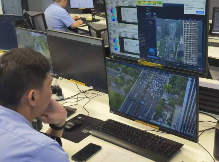 上午8点半,杭州迎来早高峰。在四季青中队勤务室里,记者看到民警正紧盯屏幕,时刻关注着车流变化。