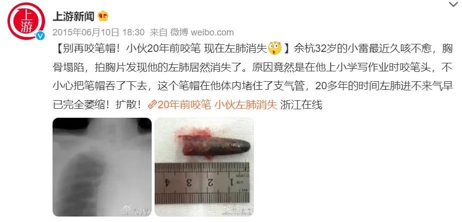 竟是9岁时把塑料笔帽留在了肺里