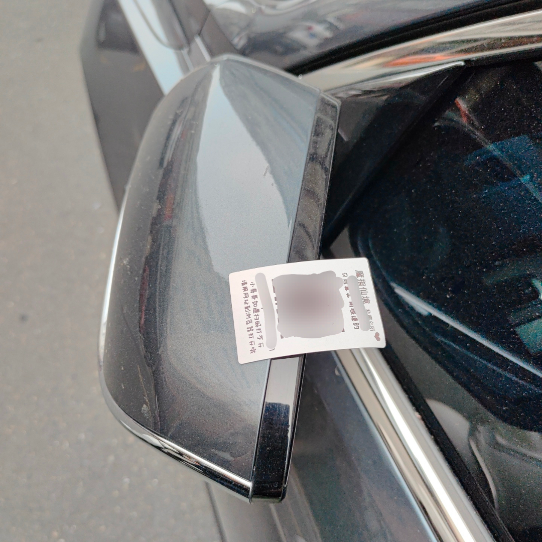 我发现车的后视镜上又被贴了