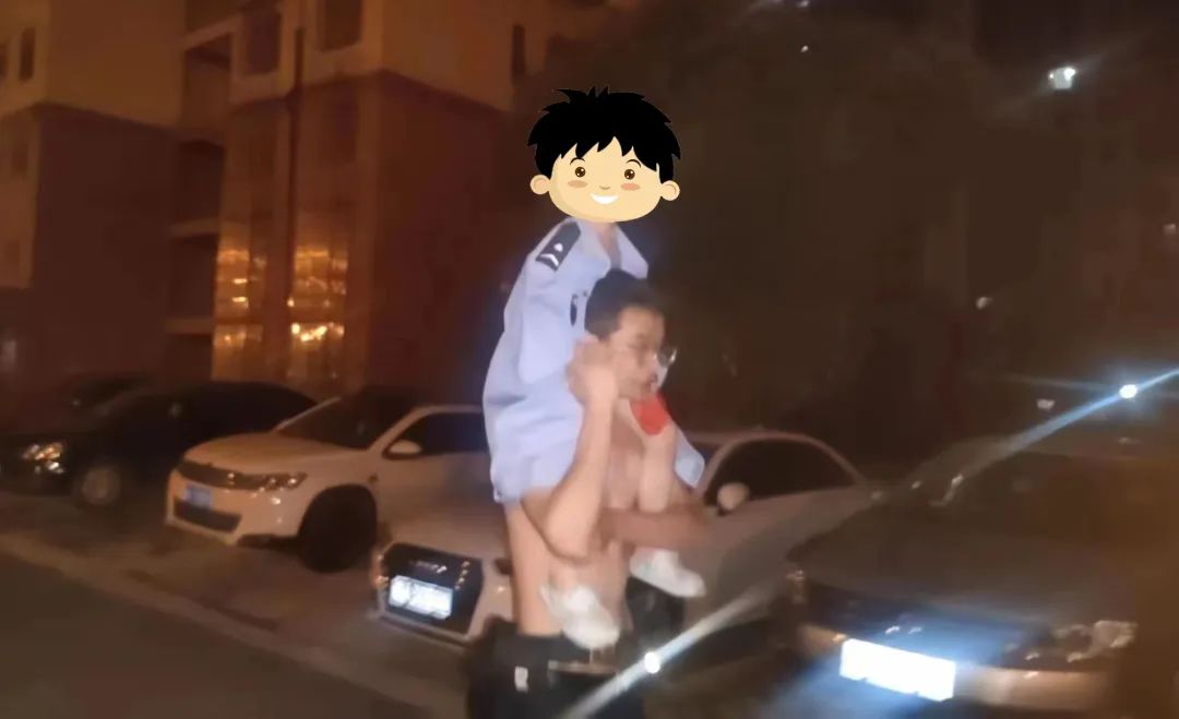 民警、辅警带着男孩一路慢慢寻找