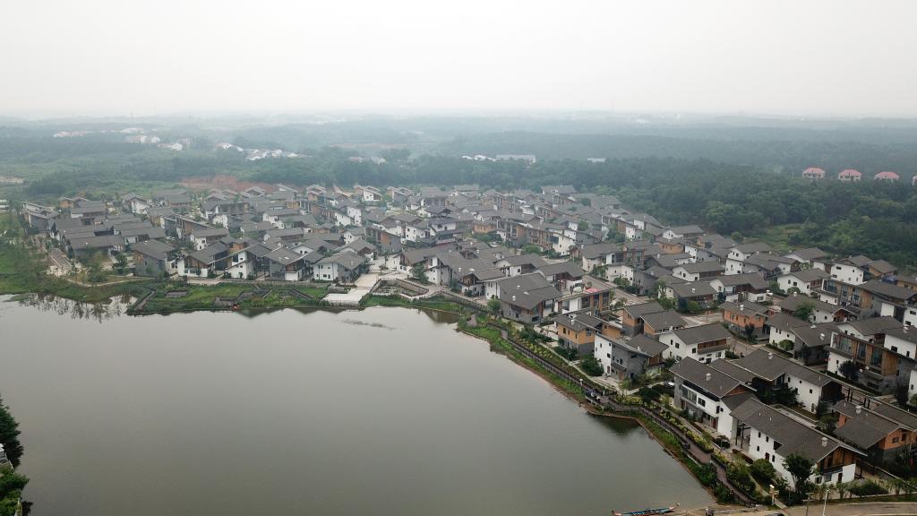 在汨罗市屈子祠镇新义村,村民和游客参与一年一度的端午民俗活动。走进村里,设计感十足的独栋小楼环绕湖面,岸边的水生植物开着花,木质游步道上游人并肩而行。屋前院后,包粽子、涂雄黄、划龙舟、非遗展示等系列活动,吸引不少游客驻足观赏。